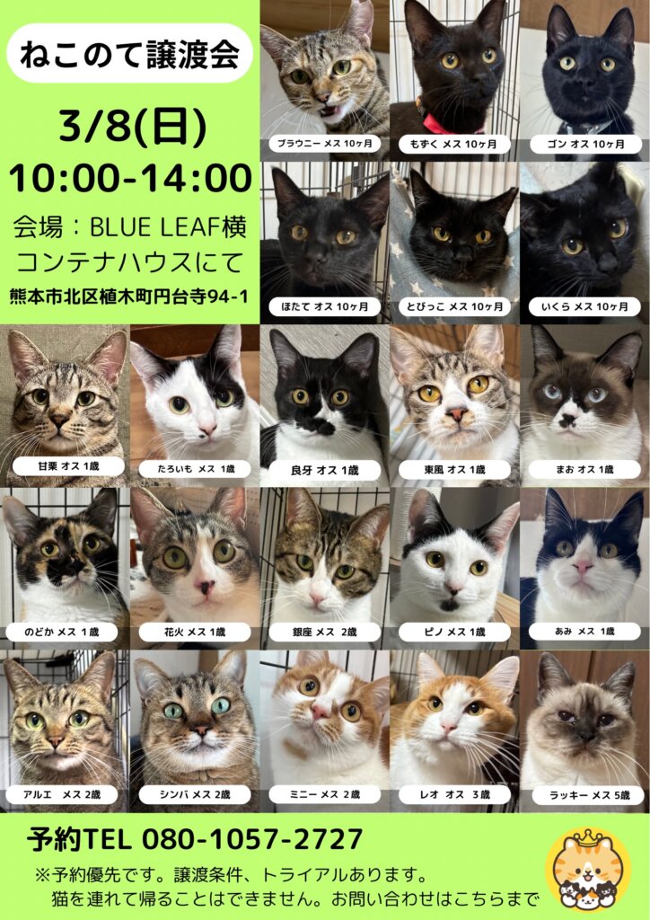 2026年3月の譲渡会は3/8(日)に植木のBLUE LEAFさんで開催いたします🐾